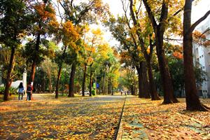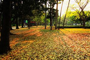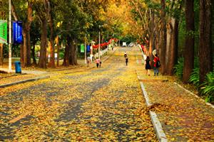 春节过后,宝岛新村林荫大道飘飘洒洒落叶,满地金黄色,让人心醉.
