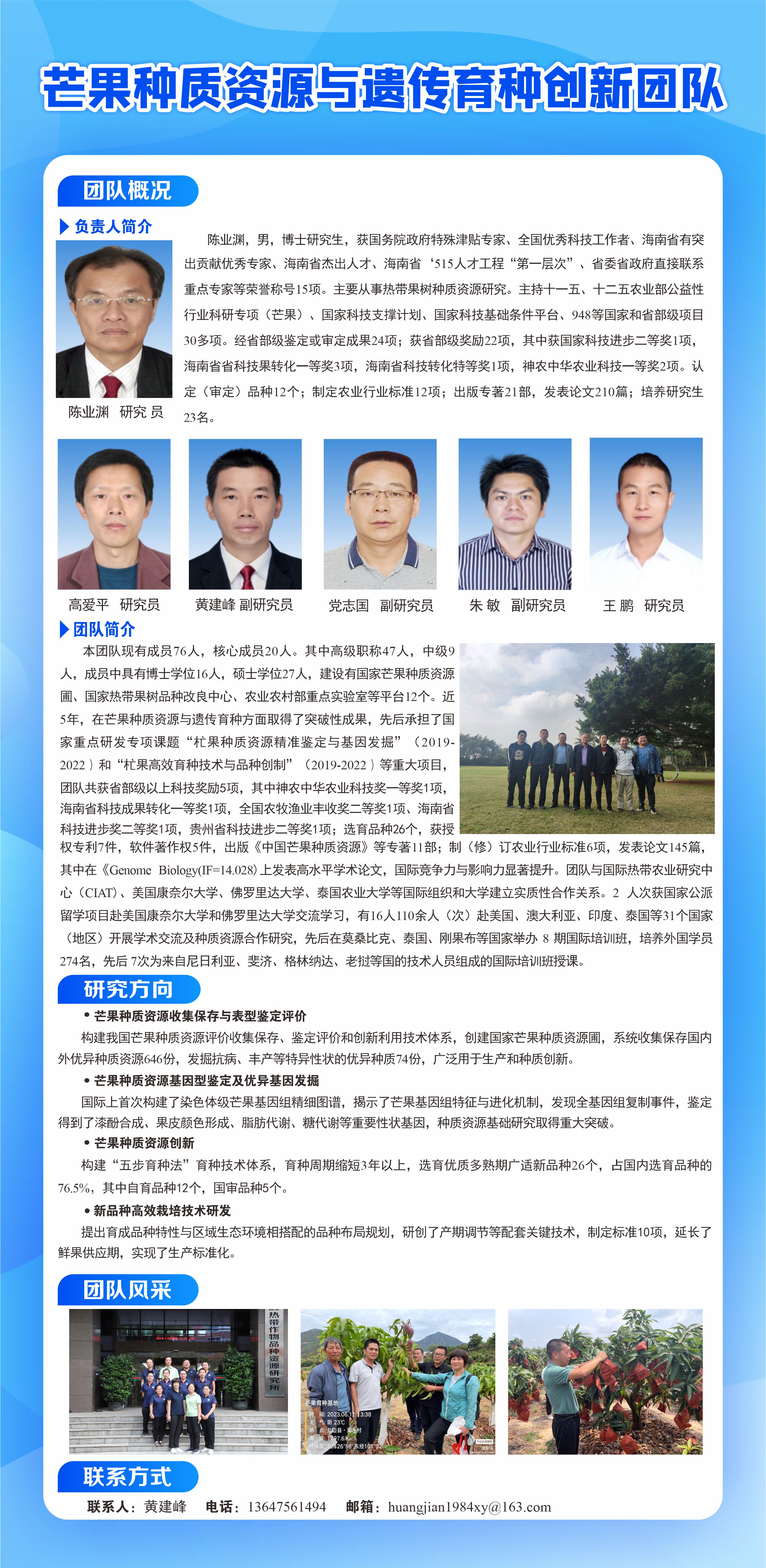 神农中华农业科技优秀团队奖—— 芒果种质资源与遗传育种创新团队