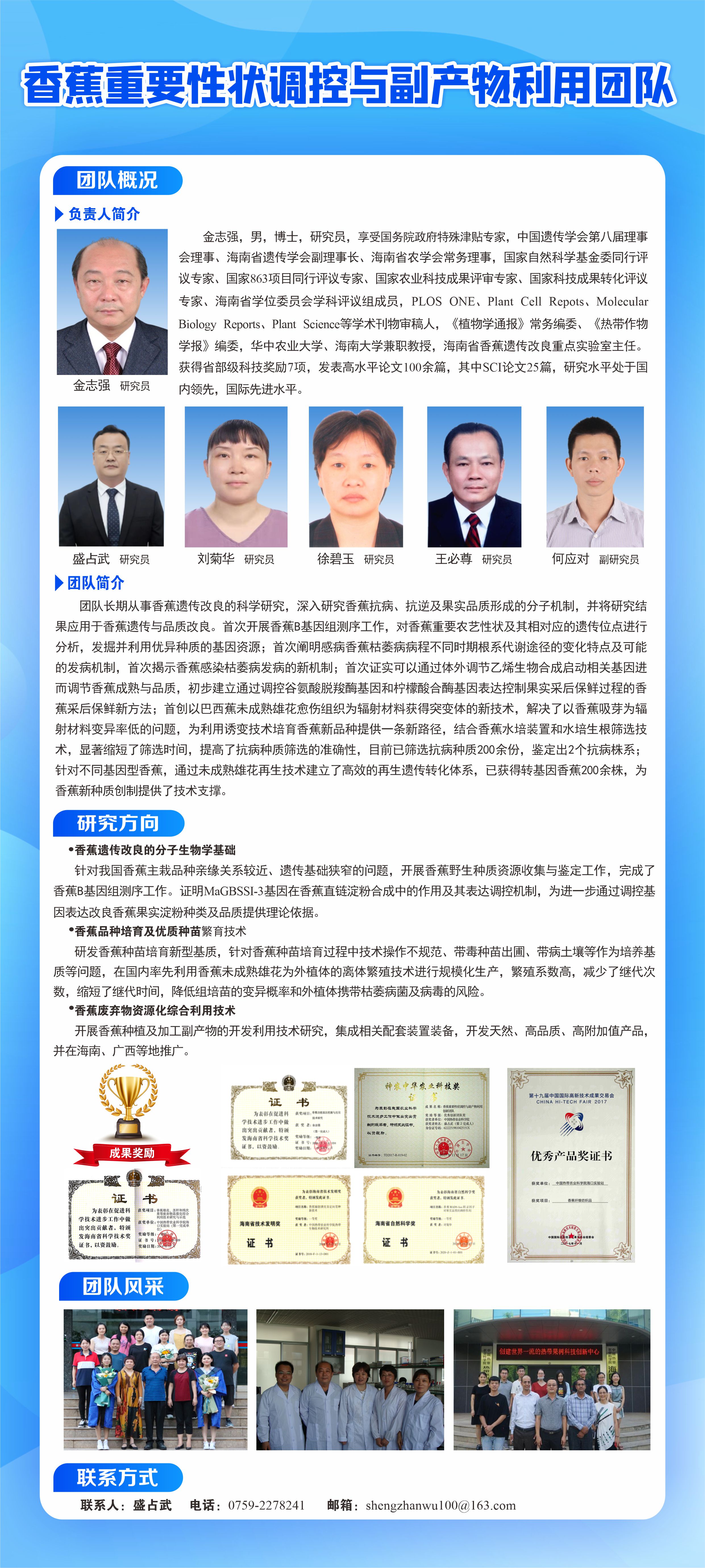神农中华农业科技优秀团队奖—— 香蕉重要性状调控与副产物利用创新团队