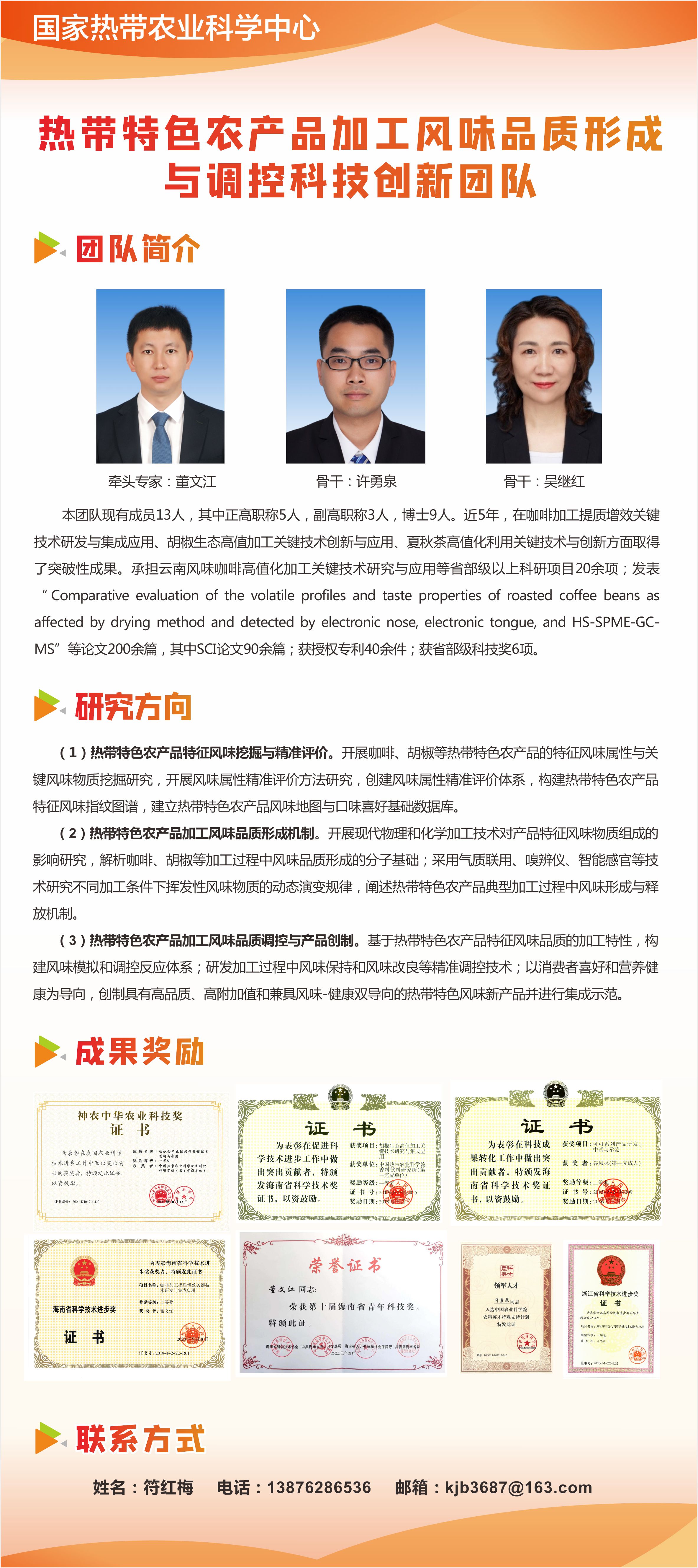 国家热带农业科学中心——热带特色农产品加工风味品质形成与调控科技创新团队