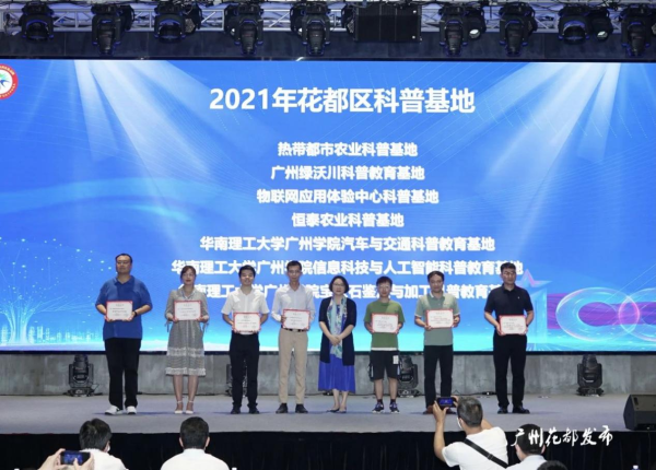 周浩副站长(左一)参加花都区科普基地授牌仪式