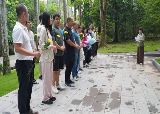 在原农业部部长、中国热科院原院长何康雕像前,青年干部驻足瞻仰并敬献鲜花,追忆老一辈热带农业科技工作者艰苦创业事迹。青年干部还前往国家热带作物种质资源圃开展调研,了解热带作物种质资源收集保存情况,感受热带农业科技创新支持我国种业安全的重要意义和贡献。