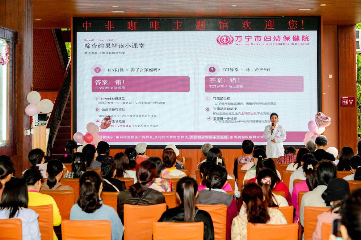 游园环节结束,活动进入健康知识讲座阶段。此次活动邀请万宁市妇幼保健院主治医师文小珍为在场女性带来女性健康知识讲座。文医生结合临床经验,用通俗语言讲解女性“两癌”筛查与相关保健知识,呼吁大家工作之余关注自身健康,定期体检,早预防、早发现、早治疗。讲座内容实用丰富,听众纷纷表示受益。