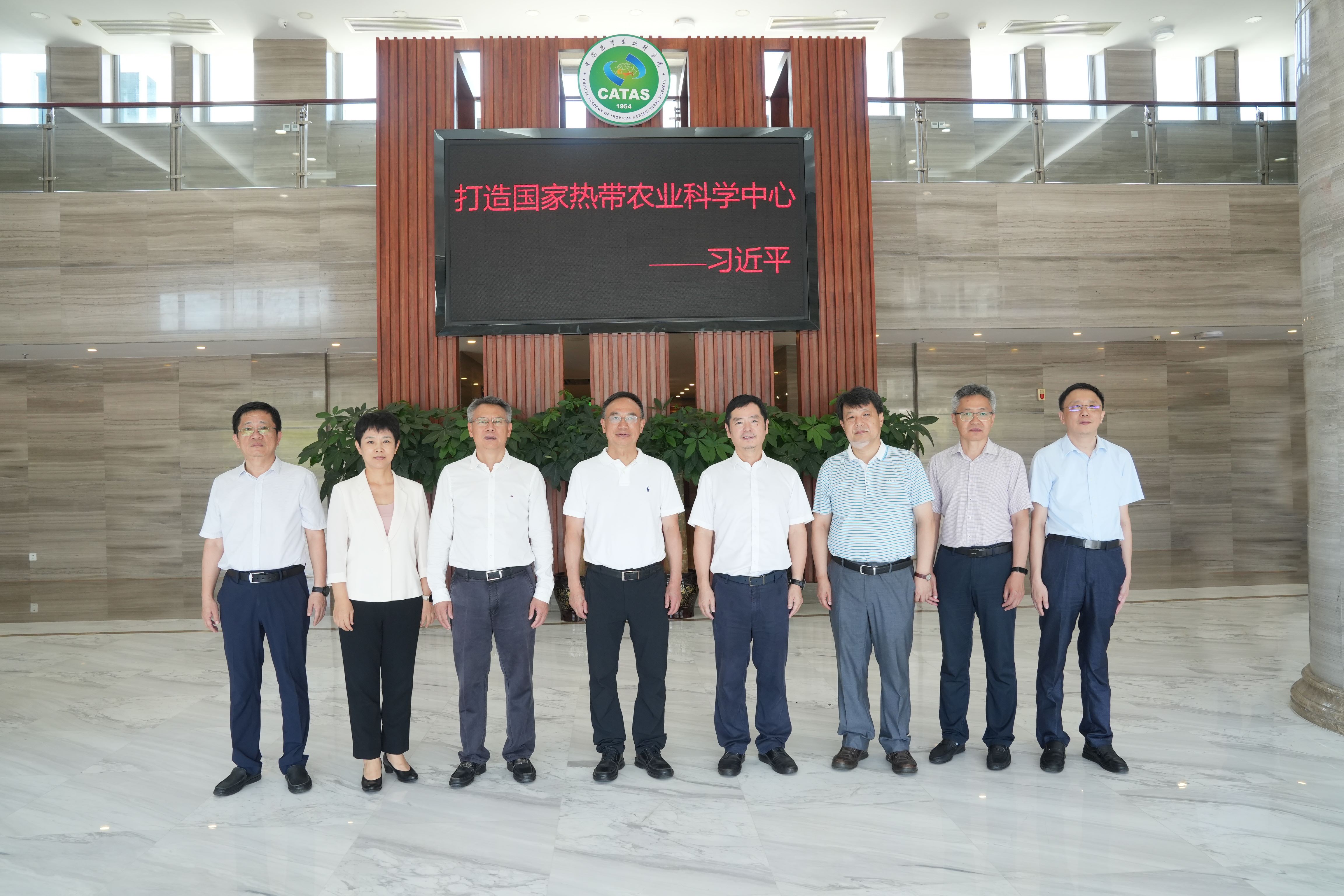 7月26日,农业农村部党组成员李敬辉到中国热科院调研,海南省政府党组成员刘平治陪同,海南省农业农村厅厅长何琼妹,海南省统计局局长杨雷,中国热科院院长黄三文参加。