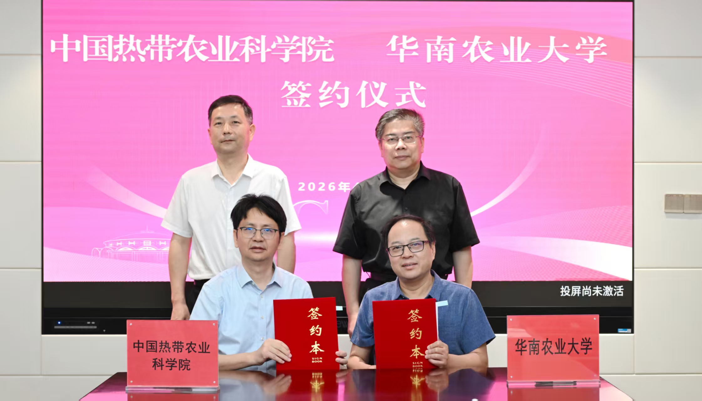 4月23日,中国热科院院长陆宴辉带队到华南农业大学座谈交流,双方签订院校合作框架协议。华南农业大学校长薛红卫、副校长仇荣亮,中国热科院院长陆宴辉、副院长谢江辉出席签约仪式。
