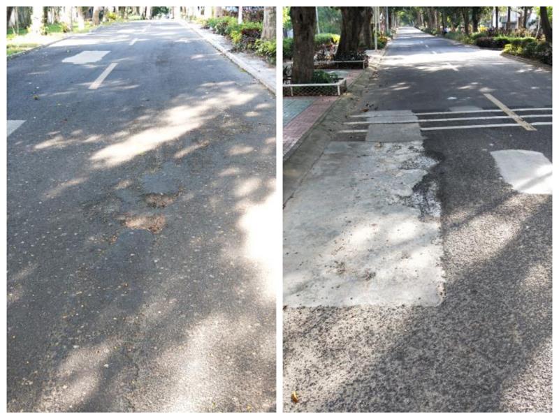 儋州院区风华路2016年铺设沥青混凝土至今已5年,由于多年的雨水冲刷,道路表面多处沥青层脱落,造成路面坑洼不平。后勤中心每年都对风华路沥青破损处进行维修维护,并在2018年进行了1次大面积的维修。为了从根本上改善儋州院区风华路的通行条件,进一步提高儋州院区基础设施水平、提升热科院对外形象,在院领导和院相关部门的大力支持和密切协助下,2019年向农业农村部成功申报了院本级修缮购置专项项目“共享设施:儋州院区基础设施改造”,对儋州院区风华路实施维修改造,将原破损沥青层铲除和对塌陷的道路基础进行修复,在道路表面铺设高标准沥青混凝土,并完善道路标志。